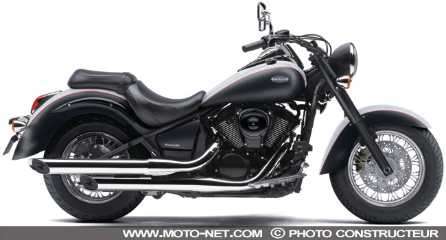 "La VN900 Classic adopte les lignes immédiatement reconnaissables des cruisers légendaires, avec ses silencieux en biseau et ses roues à rayons".