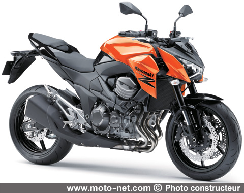 "Pour ceux qui aspirent à rentrer dans le monde des roadsters de moyenne cylindrée par la grande porte, il y a maintenant une machine vraiment exceptionnelle à leur portée : la nouvelle Z800 e version. Disponible aussi bien en version 70 kw qu’en 35 kw afin de respecter la nouvelle législation européenne du permis A2, cette moto, qui allie style et panache, rassure par son ensemble châssis - moteur et permet à la famille Z d’être plus accessible que jamais".