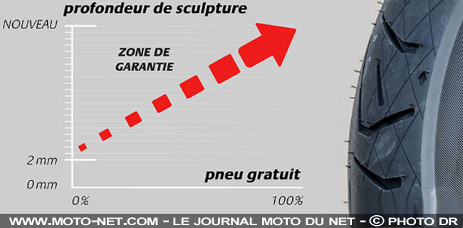 Cette remise atteindrait néanmoins "70%" pour un pneu usé à "30%", tandis qu'un pneu présentant des sculptures de moins de 2 mm sera exclu de cette garantie (graphique ci-dessus). Une bonne stratégie de fidélisation au passage, puisque ce remboursement sous conditions est exclusivement lié à l'achat d'un autre pneu Bridgestone !