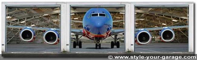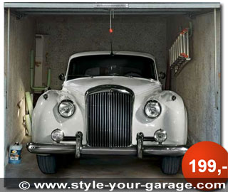 Style-your-garage.com propose donc, pour des prix allant de 199 (garage simple) à 549 euros (garages multiples), des imprimés en 3D aux motifs "extrêmement réalistes" qui pourront faire croire à vos voisins qu'une Corvette 1972, une Electra Glide, une Formule 1 ou une Bentley est garée devant chez vous, ou qu'un quai de métro, une plage paradisiaque, un salon avec cheminée, une strip-teaseuse, un cheval dans son box ou carrément un jumbo jet - et bien d'autres motifs - ont remplacé votre ancienne porte de garage !