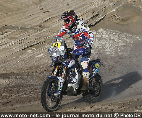 44ème au général avant de prendre le départ de la quatrième étape, David Frétigné quitte le "Roi des Rallyes" la mort dans l'âme, naturellement déçu de ne pas avoir pu enrichir son joli palmarès au Dakar : "Frétos" compte tout de même huit victoires d'étape et a terminé deux fois cinquième au général et une fois troisième (2009).