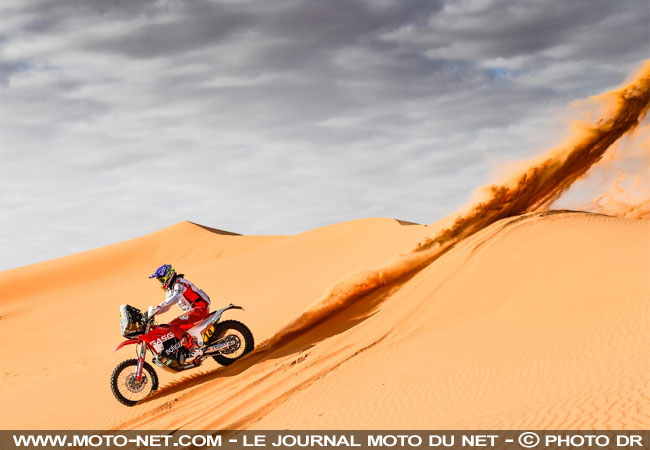 L'autre grand perdant de la journée est Kevin Benavides : le pilote argentin, qui occupait justement cette 3ème place ce matin, n'était qu'à 25 secondes de son chef de file Ricky Brabec quand le moteur de sa Honda d'usine a rendu l'âme à seulement 44 km de l'arrivée !