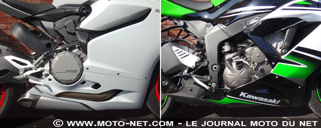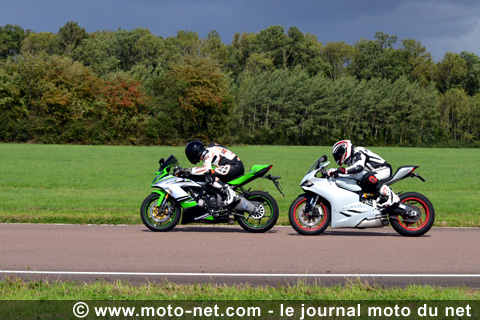 Trop fermes également, les suspensions de la Ducati transmettent au pilote les moindres imperfections du revêtement. À côté, celles de la Kawasaki ménagent mieux les poignets et les lombaires. Plus facile à prendre en mains, la Ninja est également plus facile à vivre.