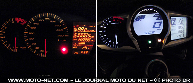Jusqu'à sa récente refonte, la FJR n'était pas non plus un modèle d'équipement... Il aura fallu attendre ce nouveau millésime 2013 pour disposer d'un régulateur de vitesse, d'un choix de cartographies d'injection ou d'un pare-brise qui ne revient pas systématiquement en position basse lorsqu'on coupe le contact ! Une commande au guidon fait également son apparition sur le commodo gauche pour contrôler les différentes infos affichées par l'ordinateur de bord.