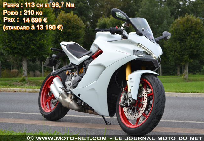 Proposée à partir de 13 190 € en version standard, la Supersport trouvera ainsi sur sa route des motos plus polyvalentes : la VFR800, certes vieillissante, à 12 949 € et la Z1000SX - au moteur bien plus démonstratif - à 13 599 €. Dans sa déclinaison S à 14 690 €, la Ducati fait jeu égal avec la - chère - BMW R1200RS à 14 550 €, à la fois plus performante (125 ch et 125 Nm), confortable et dotée d'un cardan.