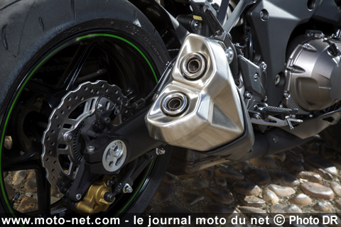 Kawasaki a parallèlement tenu à conserver le réglage de la tension de chaîne par excentriques, le découpage des disques façon "pétales", les six niveaux d'écartement du levier de frein - un seul en revanche pour l'embrayage -, le cadre à double poutre en aluminium et la suspension arrière horizontale de type Back-link, comme sur la ZX-10R !