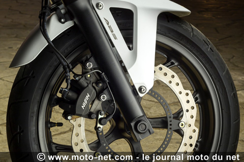 Désormais, les utilisateurs de NC750X (idem pour les NC750S ou Integra) gèrent seuls la répartition du freinage. Moto-Net.Com observe malheureusement que le frein avant perd dans l'opération un peu de sa puissance. Chargée à bloc, la 750 sera cette fois un peu plus juste que la 700 sur ce point.