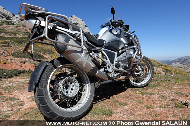 Malgré les crevasses, pierres roulantes et autres obstacles, la moto conserve une bonne tenue de cap et réagit sainement aux contraintes consécutives aux chocs, comme aux freinages appuyés de l'avant dans les descentes pierreuses. Dans les parties plus roulantes, la dérive de la roue arrière demeure assez facile à contrôler, tant que l'on reste circonspect et prudent dans sa gestion des gaz car la puissance du flotte-twin BMW ne demande qu'à s'exprimer !