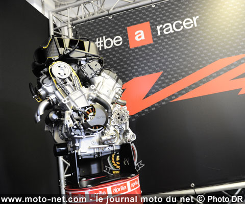 Pour atteindre ce niveau de performances, Aprilia a énormément travaillé à réduire les frictions internes et améliorer l'admission. Les culasses et les injecteurs sont nouveaux, tandis que le diagramme de distribution a été peaufiné pour améliorer le fonctionnement des 4 soupapes par cylindre, désormais en titane et de plus gros diamètre à l'admission (33 mm).