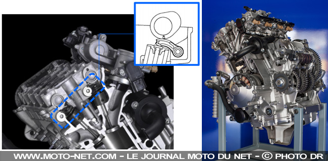 Grande première pour la firme d'Iwata, un mécanisme d'entraînement des soupapes à culbuteurs autorise une levée de soupape supérieure à la hauteur de la came, tout en réduisant la charge sur la came afin de minimiser les frictions... et maximiser les performances !