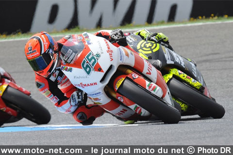 Départ. Profitant de sa position de pointe sur la grille, Stefan Bradl réalise le meilleur départ devant le Suisse Thomas Luthi, le Japonais Yuki Takahashi et l'Espagnol Julian Simon. Une fois de plus victime d'un départ moyen, Andrea Iannone s'emballe en exécutant son habituelle remontée foudroyante et part à la faute au Chemin aux Boeufs.