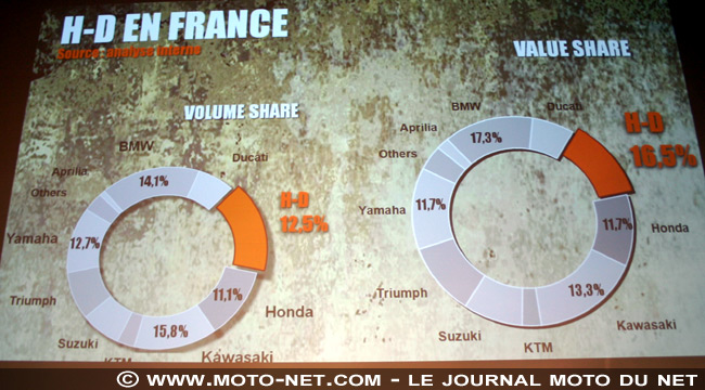 "Il est vrai que les Japonais se concentrent énormément aujourd'hui sur la fabrication de petites cylindrées pas chères qu'ils vont pouvoir vendre dans de très grands volumes", convient le DG de Harley France. À l'avenir sur le segment des customs, Harley-Davidson devra donc se méfier davantage des Victory, Triumph, Ducati ou BMW que des Honda, Yamaha, Kawasaki ou Suzuki !