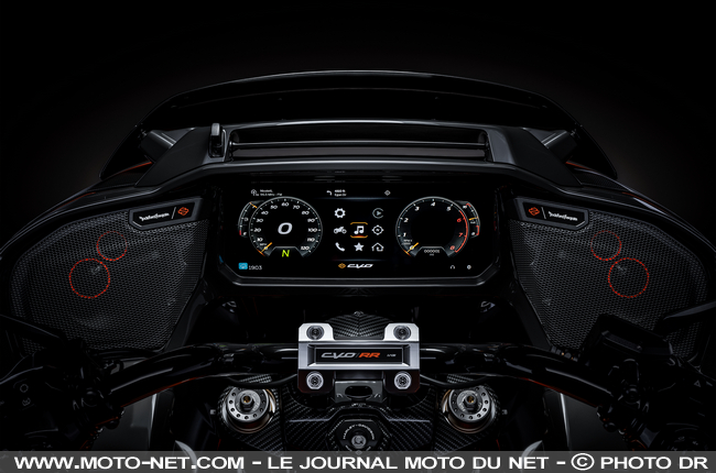 Si cette série limitée de CVO Road Glide RR fleure bon le "Racing", elle n'en reste pas moins dédiée à un usage majoritaire sur route. Le confort et la protection ne sont pas négligés, de même que l'ergonomie avec une nouvelle selle solo renforcée sur sa partie arrière. Une assise par ailleurs plus haute qu'à l'origine (735 mm).