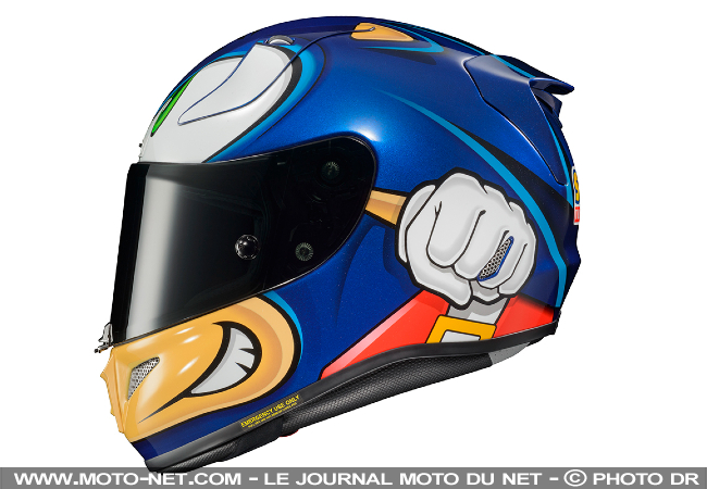 Cette collaboration prend la forme d'une décoration "Sonic" sur le casque RPHA 11, l'intégral sport haut de gamme du manufacturier coréen avec sa calotte en fibres, éjection rapide des mousses, lentille pinlock, écran teinté, bavette… Le tout annoncé à "1300 grammes en taille S".