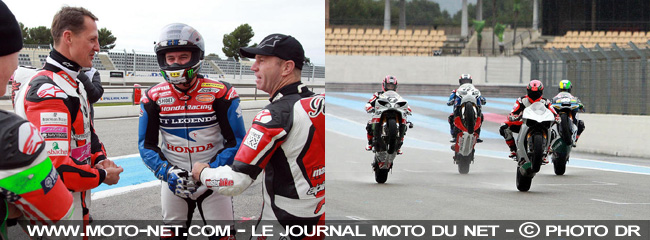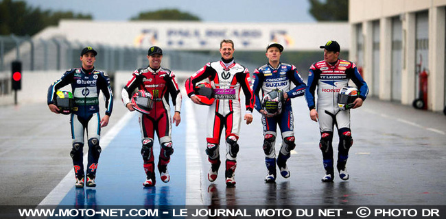 Le soleil manquait en fin de semaine dernière au Castelet (83), mais son absence n'a visiblement pas empêché Pol Espargaro, Michael Schumacher, Randy Mamola, Keith Flint et John McGuinness (cherchez l'intrus) de s'amuser !