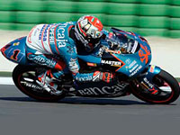 14ème et 15ème tours : Mike di Meglio et Simone Corsi passent la ligne droite des stands roue dans roue, mais l'italien ne peut attaquer le français au freinage. Sous pression, celui-ci s'engage dans le premier droit comme une flèche et doit se faire violence pour engager sa Derbi dans le gauche qui se profile aussitôt : l'arrière de la machine perd l'adhérence et c'est la chute pour le français Mike di Meglio !
