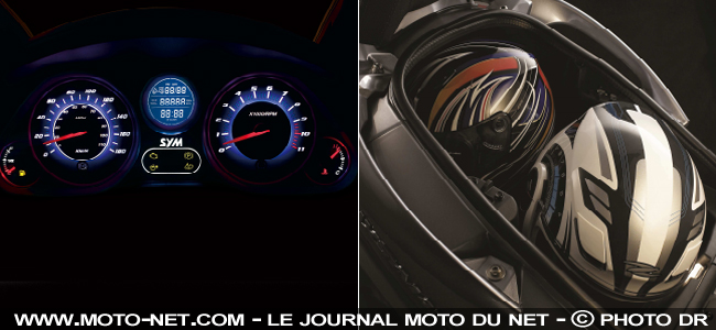Cette belle capacité d'emport est complétée par une boîte à gants et deux vide-poches "faciles d'accès pour le pilote". Reste à vérifier toutes ces belles promesses et à mettre à l'épreuve les capacités dynamiques du maxi-scooter Sym lors d'un essai prévu très bientôt sur le Journal moto du Net : restez connectés !