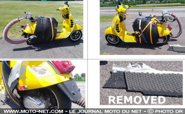 Le principe de l'étude est simple : l'Université autrichienne a précisément mesuré le bruit en dynamique de cinq motos et trois scooters, avant de les emballer dans du matériau d'isolation phonique pour évaluer la différence ! Pour faire bonne mesure, un système d'absorption additionnel à l'échappement est inclus dans cette étonnante expérience.