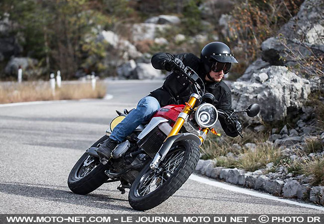 Présentée sous forme de prototype l'an dernier au salon de Milan (Italie), la Caballero se décline en deux versions techniquement identiques : la Scrambler avec des pneus à pavés et la Flat Track qui évoque la glisse sur terre battue.