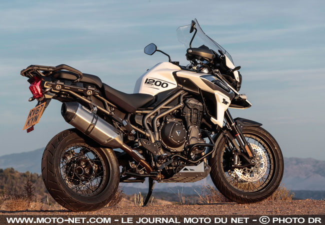 Extrêmement bien équipée, soignée et rigoureuse, la Tiger 1200 ne pêche que par son embonpoint lié à son 3-cylindres en ligne de 1215 cc et ses nombreux équipements. Ses jantes en 19 et 17 pouces et sa garde au sol correcte suffisent sur pistes roulantes, mais gare aux excès : cette moto dotée d'un cardan transparent accuse dans les 265 kg avec les fluides et le plein de 20 litres !