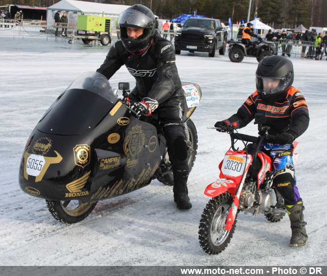 Parallèlement, le daron aussi a inscrit ses nom et prénom dans les tablettes : à bord de son "enclume" inscrite dans la catégorie "3AS" des 500cc 4-temps atmosphérique streamliner, Morgan a fusé à 190,71 km/h, instaurant un nouveau record mondial et devenant le motard français le plus rapide sur glace !