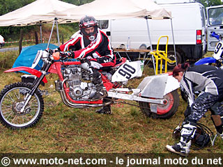 Certes, la belle 450 de cross est légèrement décalée à côté des protos en tout genre, doubles moteurs de 500 Kawa cross, 1000 R1 gonflés à bloc ou 1000 Kawasaki à compresseur, 998 Ducati et autres moteur de Harley-Davidson montés dans des cadres "faits main", des bras oscillants hyper rallongés et des roues arrières de voiture de sport aux pneus cloutés d'énormes boulons ou chaussées de pneus à godets... Mais le chevalier Sergei est serein : sa Force Basque est là !