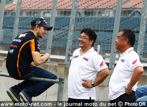 "Au cours de ces deux journées avec Casey, nous avons pu enregistrer beaucoup de données et trouver de nouvelles idées pour le développement", s'est réjouit Shuhei Nakamoto, vice-président du HRC (à droite sur la photo ci-dessous), sans commenter les bruits de couloirs entourant l'éventuel retour en course de Stoner...