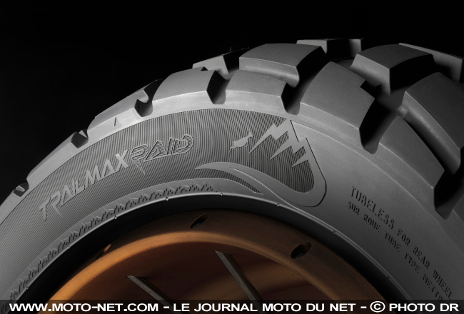 Le Trailmax Raid est par ailleurs de type monogomme : "nous avons testé des solutions bi-gommes, mais ça ne fonctionnait pas", nous avoue le dirigeant de Dunlop Moto France. "Cette technologie nécessite d'avoir une limite bien distincte entre la bande roulement dure et les épaules tendres, ce qui est impossible à l'heure actuelle avec d'aussi gros crampons".