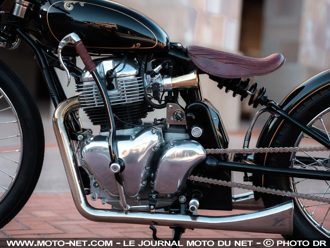"Le design du guidon est directement inspiré d'une Royal Enfield Bullet 350 de 1951 que nous avons récemment restaurée", dévoile le préparateur. "Son profil plat permet au pilote de se tenir droit et sa courbe inversée offre une belle vue sur le poste de pilotage".