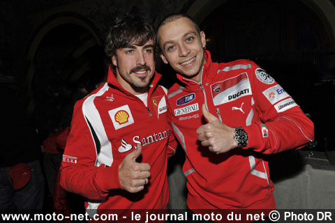 “Je vais forcément avoir plus de pression qu'avant avec Ducati, parce qu'il y a beaucoup de fans à travers le monde qui sont impatients de me voir courir avec Ducati", souligne le champion qui a posé pour la photo avec son "copain" Fernando Alonso (second du championnat 2010 de Formule 1 avec Ferrari).