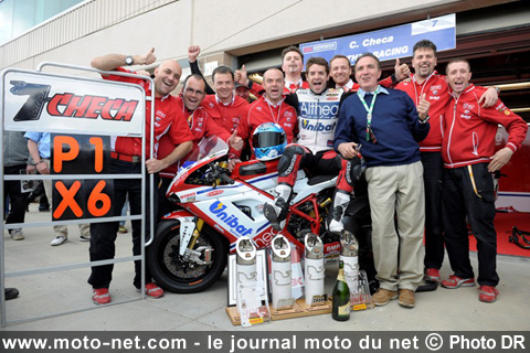 Auteur de la pole, du meilleur tour en course - son record de 2010 reste néanmoins valide - et vainqueur par KO des deux rounds américains, Carlos Checa a parfaitement négocié cette cinquième épreuve pour accroître sensiblement son avance : 61 points sur Melandri et 62 sur Biaggi !