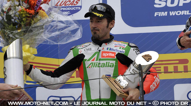 Mais le n°2 d'Aprilia a le potentiel pour faire encore mieux ! Son coéquipier Biaggi a montré l'an dernier comment l'Aprilia pouvait dominer la planète Superbike. Cette année, le Transalpin semble quelque peu déboussolé : par la Ducati n°7, certainement, mais peut-être aussi par le succès ?!