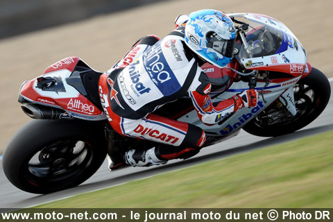Son coéquipier - notre compatriote ! - Sylvain Guintoli n'a pas passé le cap de la Superpole 1. Le n°50 ne s'est pas encore remis de sa chute à Phillip Island et devra serrer les dents demain pour marquer le plus de points possible. Il s'élancera de la 14ème place, juste devant notre second représentant, Maxime Berger.
