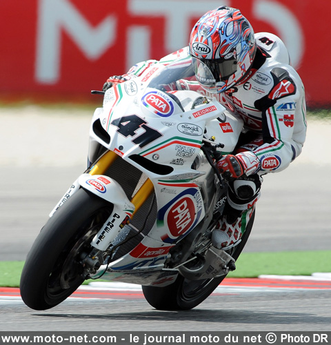 Derrière, à presque huit secondes, Melandri enchaine soigneusement les boucles et se dirige sagement vers un cinquième podium. Laverty se trouve à trois secondes et Sykes à cinq secondes : sauf incident, cette partie du classement ne devrait pas bouger.Leon Camier occupe la 6ème place mais doit se méfier de ses deux adversaires directs : Sylvain Guintoli et Ayrton Badovini, qui ne cessent de se chamailler sous les yeux de Lascorz. Le n°17 des Verts a raison de se tenir à distance : les deux de devant pourraient s'emmêler les pinceaux... et lui offrir la 7ème place.