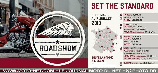 Le constructeur américain Indian (groupe Polaris) organise des essais de ses motos via sa structure itinérante qui s'arrêtera dans seize villes françaises, du 15 mars à Nantes au 5 juillet à Biarritz. Probable que la nouvelle FTR1200 va attirer du monde pendant ce Roadshow 2019 !