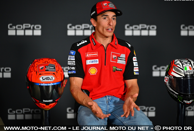 "Je roule exactement avec la même moto qu'Alex, Fermin et Franco", assure Marc Marquez en évoquant les différences entre sa Ducati officielle 2025 et celle de son frère cadet et des autres pilotes satellites. Sa GP25 serait actuellement identique à la GP24 car les nouveautés prévues pour le team usine doivent être "encore affinées", précise l'espagnol.
