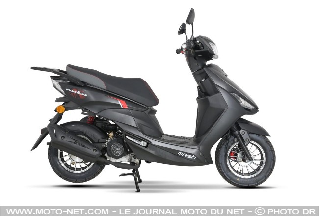 Disponible en noir ou en gris, ce scooter Radar développe 2,8 ch et 2,8 Nm pour atteindre les 45 km/h légaux. Sa ligne sportive est rehaussée par sa touche de rouge sur le disque et étrier, ainsi que ses jantes en 10 pouces aux bords polis. Léger (82 kg), ce Radar 2026 emporte 4,2 litres d'essence pour une consommation estimée à "2,2 l/100 km". Son prix est de 1149 euros avec garantie trois ans pièces et MO.